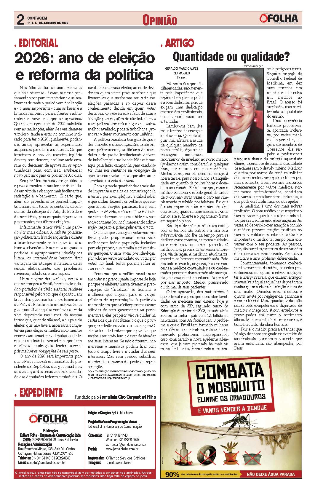 Jornal OFolha Contagem – 11 a 17 de janeiro de 2026